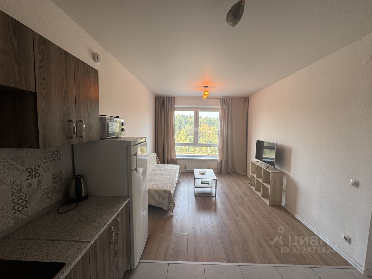 Комнаты меблированы, в том числе есть мебель на кухне. Для вашего комфорта предусмотрена вся необходимая техника: холодильник, телевизор и стиральная машина. Санузел совмещённый, оборудован ванной.