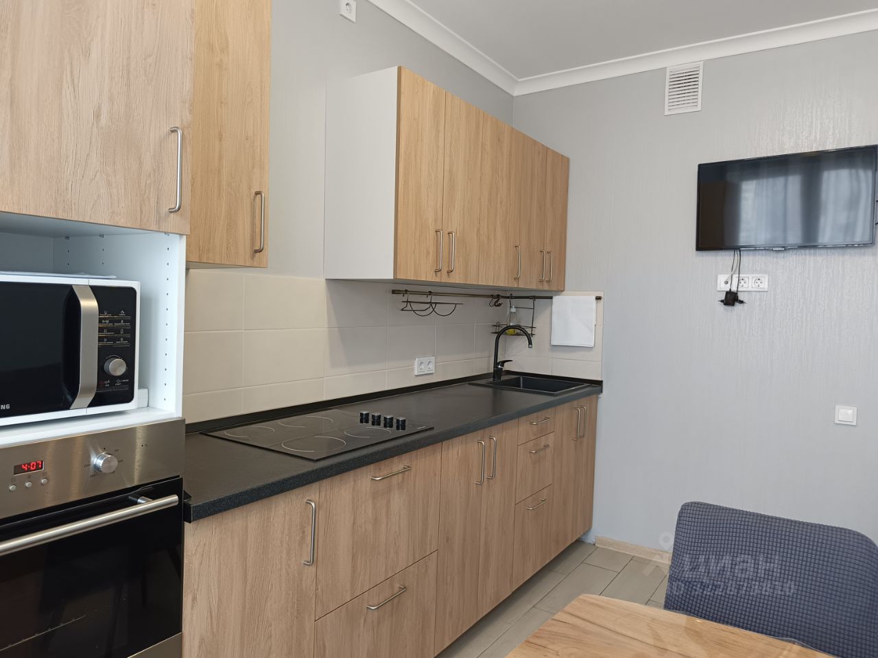 В квартире есть всё необходимое для комфортного проживания. Евроремонт выполнен в светлых тонах, что добавляет уюта и стиля. В кухне и комнате имеется современная мебель. Ванная комната оборудована ванной, что позволяет расслабиться после рабочего дня. Из техники вы найдёте холодильник, телевизор и стиральную машину.