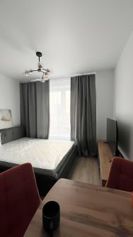 Уютная студия на 18 этаже, панорамный вид на город. Вся мебель и техника новая, установлен кондиционер, ТВ, холодильник, стиральная и посудомоечная машина. В шаговой доступности метро Волгоградский проспект, рядом стоится сад и школа.