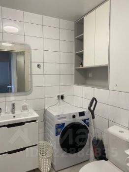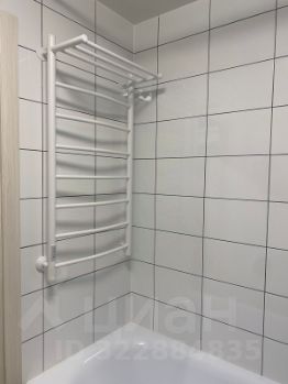 В ванной комнате: стиральная машинка, полотенцесушитель, моющий пылесос