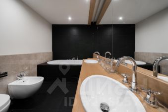 - главная ванная комната с ванной, двумя раковинами и душевой,