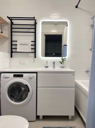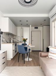 Бытовaя теxникa: кондиционер, холодильник, варочная панель, духовой шкаф, микроволновая печь, стиральная машина, посудомоечная машина, вытяжка, телевизор, электрический чайник.