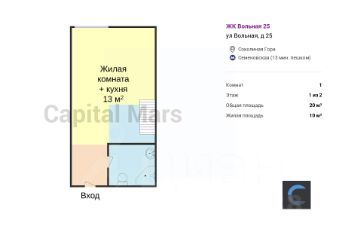 Предлагается 1-комнатная квартира общей площадью 20 м² в ЖК "Вольная 25" недалеко от станции метро "Семеновская". Высокие потолки увеличивают пространство, наполняя его светом. Для комфортного проживания в наличии имеется вся необходимая мебель, а также кондиционер. Кухонный гарнитур оснащен духовой печью. Подключена стиральная машина. Окна обращены во двор и на улицу.