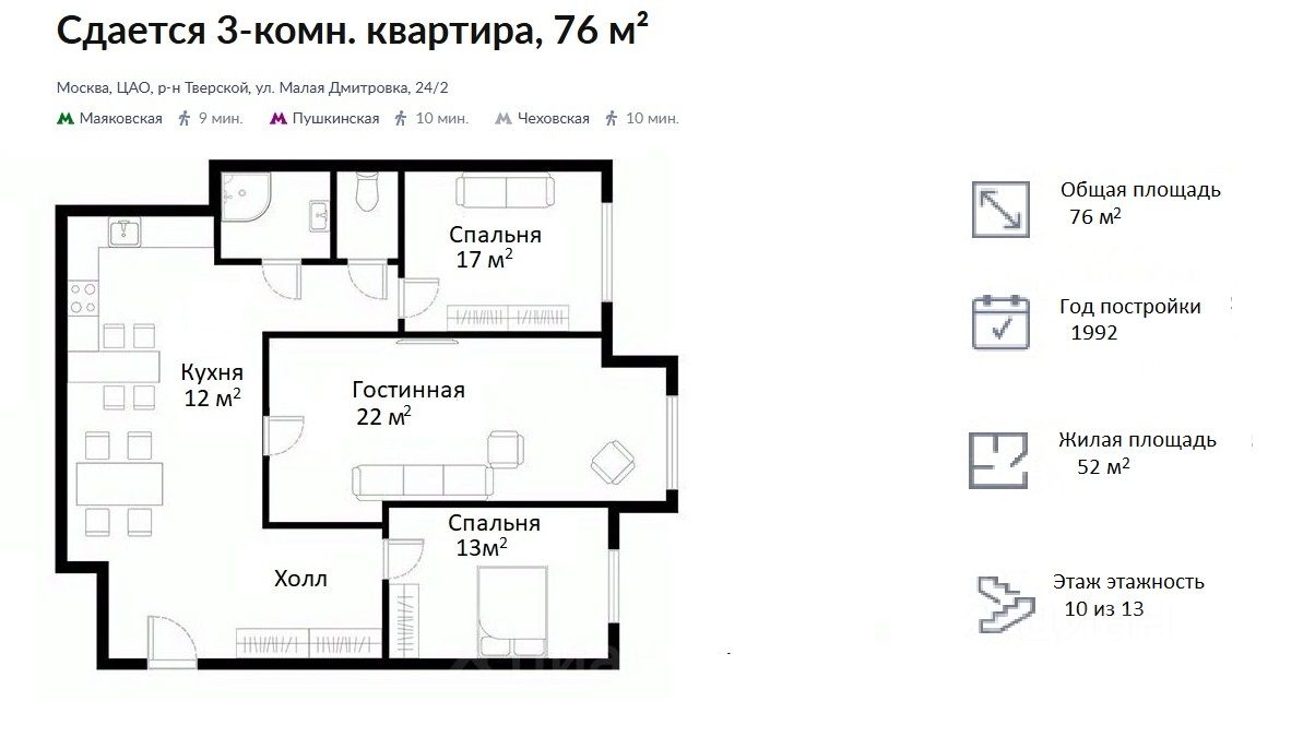 Александр. БЕЗ КОМИССИИ ДЛЯ ВСЕХ. Центр Москвы. Ведомственный Кирпичный дом Художников с Огороженной Охраняемой Территорией. Дом построен из Высококачественного Плотного Рыжего Кирпича. Благодаря Высококачественному Плотному Рыжему Кирпичу; В Холодную Погоду Держит Тепло, а в Жаркую Погоду Держит Прохладную Температуру. Предлагается 3-х комнатная квартира ПРЕМИУМ КЛАССА с 3-я изолированными комнатами. В квартире, в санузле выполнен свежий качественный ДИЗАЙНЕРСКИЙ ЕВРОРЕМОНТ в современном стиле c использованием дорогих, качественных, экологически чистых, зарубежных строительных материалов. Квартира светлая, отличная тепло и звукоизоляция. На кухне установлен современный встроенный кухонный гарнитур из натурального дерева производство ITALY с встроенной посудомоечной машиной, с установленной современной бытовой техникой, с установленной системой приточно-вытяжной вентиляцией на кухне, в одной из спален. В гостиной, в большой спальне установлены кондиционеры. В гостиной, в двух спальнях, в прихожей установлена современная мебель производство РОССИЯ. В квартире санузел раздельный. Ванная комната большая. В ванной комнате есть ванна и душевая кабина. В ванной комнате установлен бойлер. Полы: В гостиной, в двух спальнях натуральный дубовый парке. А полы: На кухне, в санузле, в холле, в прихожей кафельная плитка с подогревом. На окнах установлены дорогие стеклопакеты. Вид из окон выходит на тихую улицу. А вид с общего балкона в подъезде выходит в красивый зеленый оборудованный двор. Подъезд чистый без запахов. Постоянные уборка и поддержание в чистом убранном состоянии внутридомового пространства и прилегающей территории дома. Презентабельная входная группа. Круглосуточная охрана и видеонаблюдение всего периметра дома. Двор дома большой. На огороженной охраняемой территории дома есть: Мета для уединения и отдыха с лавочками, большая стоянка для машин. У наймодателя есть Машино-место по желанию клиента им можно пользоваться (Отличная удобная инфраструктура, все необходимое в пешей доступности. Недалеко от дома расположены: Магазины, торгово-развлекательные центры, фитнес-клубы, салоны красоты, кафе, кубы, бары, рестораны, парк культуры и отдыха, Сад Эрмитаж и многое другое. Оперативный показ. На просмотре все обговорим, и назначим дату и время удобное для вас подписание договора.