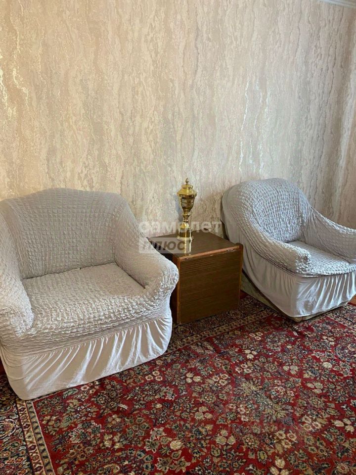 В одной комнате расположен диван, два кресла,одно из них можно превратить в кровать)