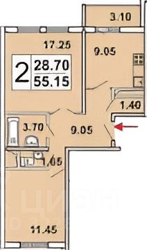 Комнаты изолированные, 17,25 и 11,45 кв м , кухня 9,05 кв м, лоджия со входом из кухни, просторный холл.