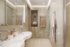 Квартира с дизайнерским ремонтом и продуманной планировкой включает 4 комнаты, просторную кухню площадью 40 кв. м и жилую площадь 100 кв. м. Высокие потолки 3 метра создают ощущение простора. В квартире есть все необходимое для комфортного проживания: мебель на кухне и в комнате, а также современная техника — кондиционер, холодильник, посудомоечная и стиральная машины, телевизор. Ванная комната оборудована и ванной, и душевой кабиной, что позволяет выбирать самый удобный вариант. Два отдельных санузла и один совмещенный обеспечивают дополнительное удобство.