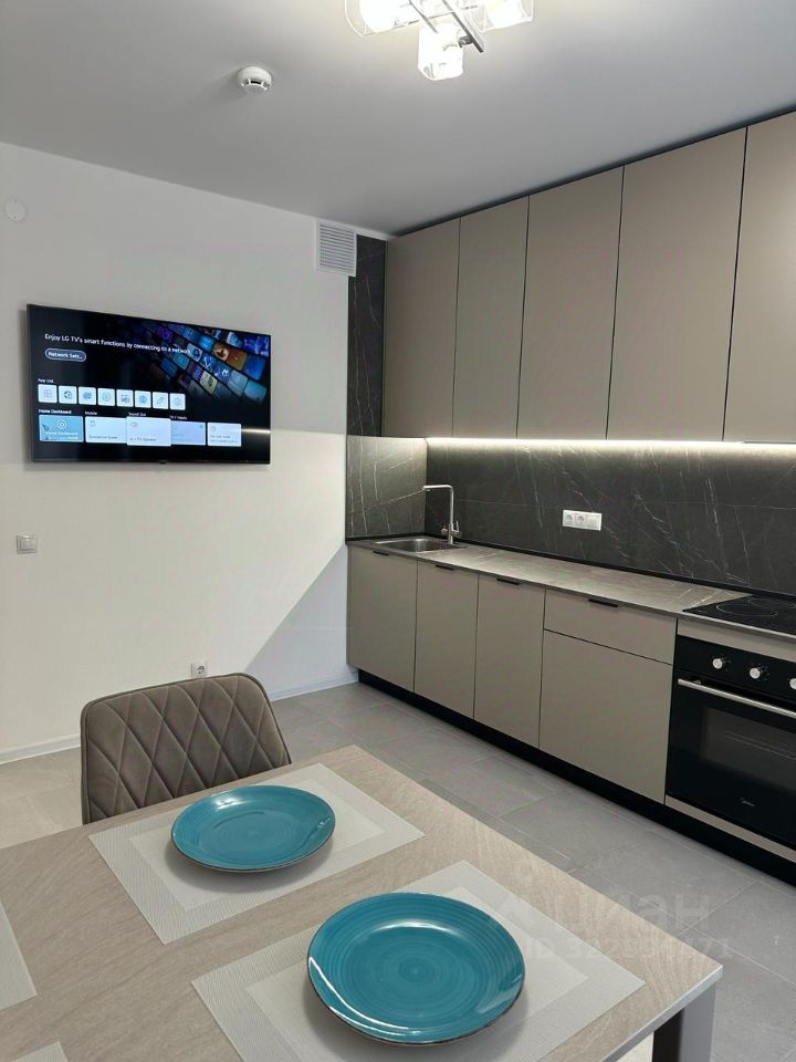 Большая кухня (13,3 м) оборудована всей необходимой техникой, включая ТВ.