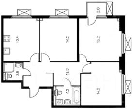 3 комнаты: 1. спальня (14.2м) большая кровать (200*180) и большой встроенный шкаф. 2. комната (13.7 м) также имеет большой шкаф. 3. комната (15 м) имеет французский балкон.