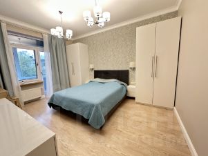 В спальне двуспальная кровать с ортопедическим матрасом, два шкафа, прикроватные тумбочки, сплит система, комод, небольшой стол. Застекленная лоджия.