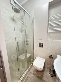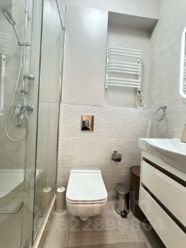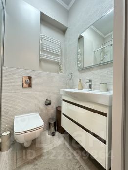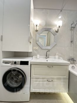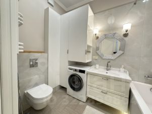 Два отдельных санузла, подогрев пола, ванна и душевая кабина, стиральная машина, шкафы.