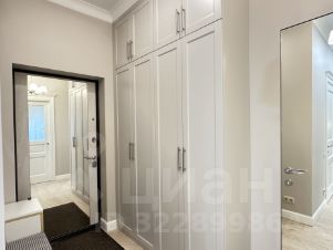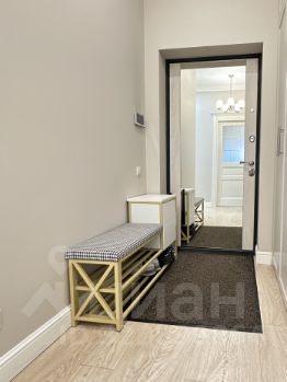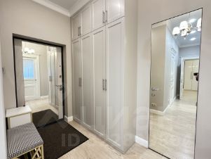 В прихожей вместительная гардеробная система, зеркало, обувница, банкетка. Высокие потолки!