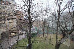 Парковка во дворе под шлагбаумом.