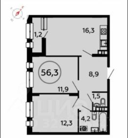 56,3 м²