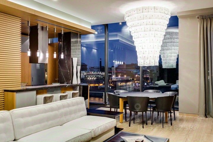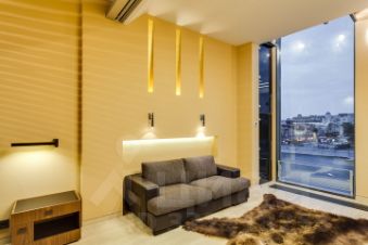 Элитный ЖК "Баркли - Плаза" в районе Золотой Мили построен по проекту известного архитектора. 2/3-х комнатная квартира студийной планировки с высококачественным дорогим дизайнерским ремонтом без излишнего пафоса и с уникальными видовыми характеристиками - Москва-река, Красный Октябрь и Петр-I видны как на ладони за счет панорамного остекления от стены до стены и высотой более 5 метров. Функциональная планировка квартиры: гостиная совмещенная с кухней и обеденной зоной, спальня со своим санузлом, гардеробной комнатой и рабочим местом с возможностью изолирования от спальни, гостевой санузел и еще одна гардеробная. Кухня-трансформер, дорогое оборудование и посуда, кофемашина и очищенная питьевая вода в доме. Особенности планировки - 1 спальня может трансформироваться по желанию в спальню и в кабинет с выдвижной стеной на пульте, диван-кровать в кабинете, мастер-ванная с музыкой, гостевой санузел, две гардеробные. Мебель "Giorgetti", система умный дом, система очистки воздуха и кондиционирования (три независимые системы кондиционирования, принудительная приточно-вытяжная вентиляция: очищенный, подогретый, увлажненный воздух 1000м^3 в час.), звукоизоляция, музыка Hi-end для ценителей, система очистки воды, спутниковое ТВ, интернет. Одно машиноместо в подземном паркинге входит в стоимость (при необходимости есть возможность аренды второго). В арендную ставку включены генеральная уборка 1 раз в неделю, услуги аквариумиста и все платежи за квартиру.