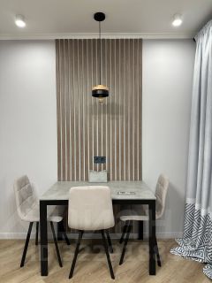 Евроремонт выполнен в современном стиле. Квартира полностью мебелирована и укомплектована техникой. В квартире всё новое - мебель, техника, кухонный гарнитур, сан.техника.