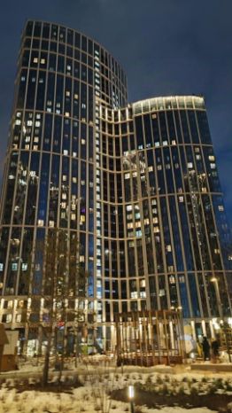 Дом оснащен пятью грузовыми лифтами, что особенно удобно для семей с детьми или при переездах. Территория комплекса благоустроена, рядом есть магазины, поэтому можно легко купить все необходимое.