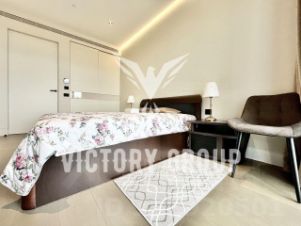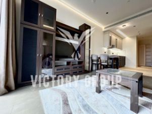 Планировка включает просторную кухню-гостиную, уютную спальню с гардеробной комнатой, ванную комнату и холл. В квартире установлена центральная система кондиционирования. Дом оснащён умными лифтами.