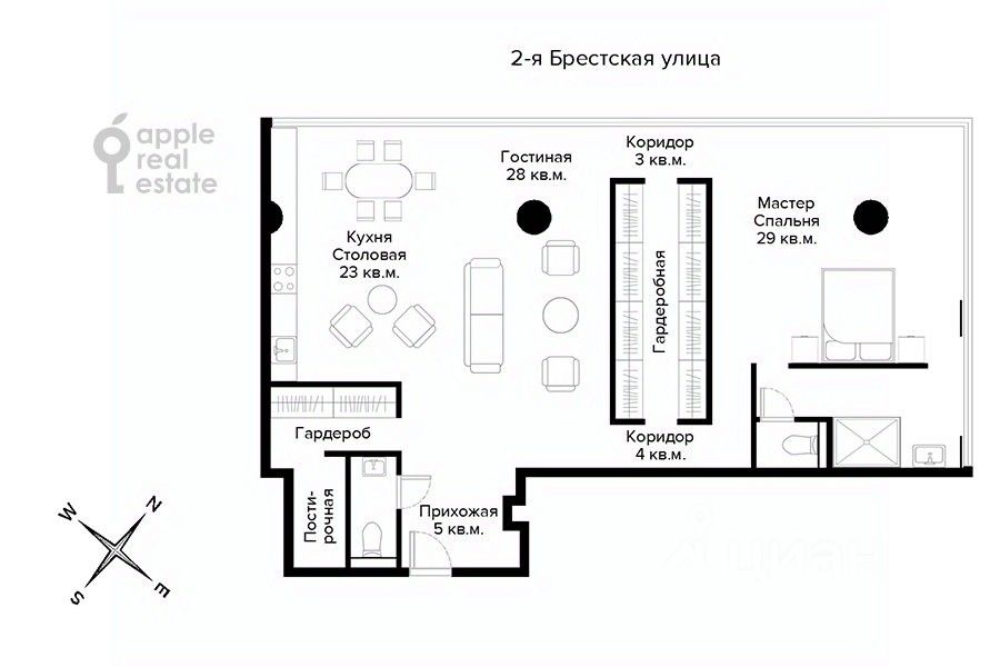 Эксклюзив. ЖК Четыре ветра. Стильная новая 2-комнатная квартира в современном доме. 3 / 10 этаж. Спален: 1, санузлов: 2. Общая площадь: 125.6 кв.м. Потолки 3.5 м.