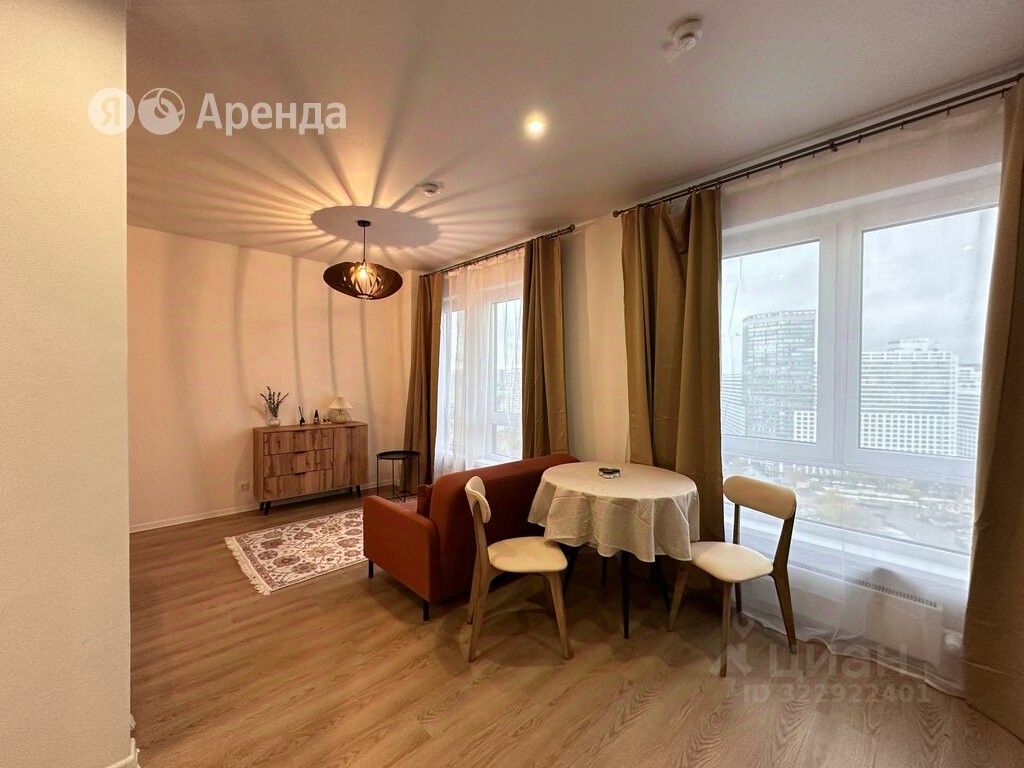 Сдаётся 1-комнатная квартира площадью 34 кв.м. с евроремонтом на 21 этаже в 33-этажном доме на срок от 11 месяцев. Из техники есть: