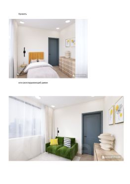 1. В настоящее время апартаменты укомплектовываются по приложенным рендерам. Однако, возможно иное доукомлектование по договоренности арендатора и собственника (например, замена кровати на раскладывающийся диван).