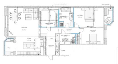 Пространство гостиной с кухней и столовой станет любимым местом притяжения семьи и друзей (почти 70 квадратных метров).