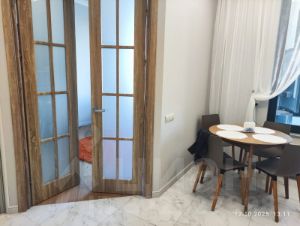 В квартире произведен дизайнерский ремонт с установкой элементов "умного дома". Высота потолков 3м. Квартира оснащена полностью для комфортного проживания. В планировку квартиры входят: два санузла, две гардеробные, спальня, гостиная, кухня и прихожая.