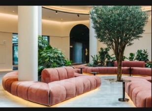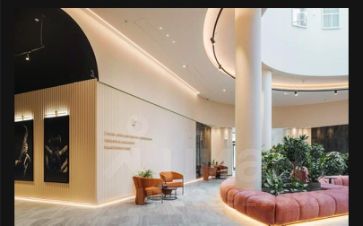 В доме расположены: лобби с зимним садом, переговорные комнаты, лаундж зоны, детская игровая комната, подземный паркинг. Места общего пользования оформлены с участием архитектурного бюро HAAST.