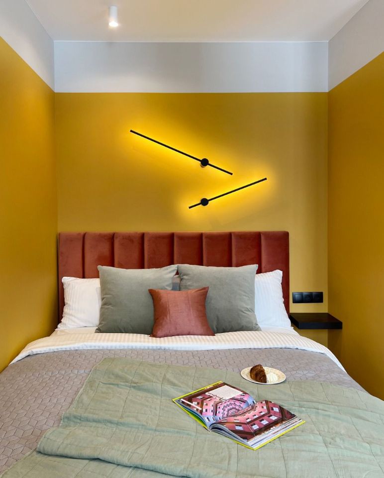 Студия полностью укомплектована всем для комфортного проживания: Холодильник, электрический чайник, стеклокерамическая варочная панель, микроволновка, посудомоечная машина, TV, высокоскоростной Wi-Fi, Кондиционер, стиральная машина, фен, утюг, гладильная доска, сушилка, двухспальная кровать шириной 160, кушетка.