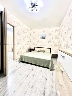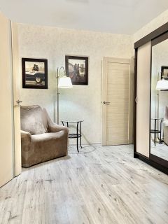Квартира с евроремонтом, обставлена всей необходимой мебелью и техникой. Есть вместительная гардеробная. В наличии кондиционер, холодильник, телевизор и стиральная машина. Планировка включает отдельный санузел и балкон с окнами, выходящими во двор. В ванной комнате установлена душевая кабина. Высокие потолки — 2,7 метра — добавляют пространства и света.