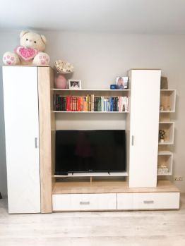 В квартире есть всё необходимое для комфортного проживания. На кухне установлена современная мебель, а также холодильник и посудомоечная машина. В комнате вы найдёте мебель для хранения и отдыха. Ванная комната оснащена ванной, а также стиральной машиной. Для развлечений и работы установлен телевизор и обеспечен доступ к интернету.