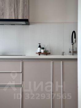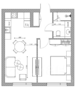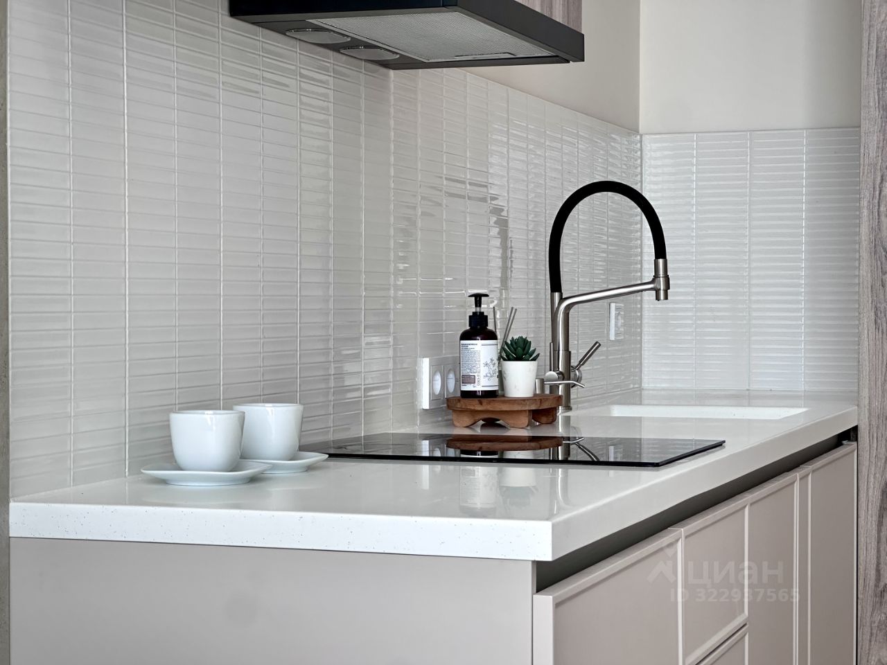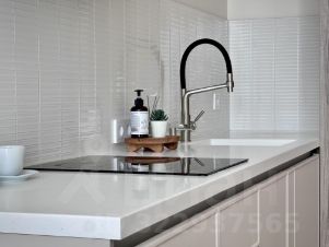 Общая площадь квартиры составляет 45 квадратных метров, из которых 20 квадратных метров занимает кухня. Высокие потолки в 3.8 метра дарят ощущение простора, квартира будто наполнена светом.