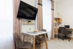 В каждой квартире есть все, что нужно для комфортного проживания: спальные места, посуда, микроволновка, телевизор, Wi-Fi, холодильник.
