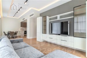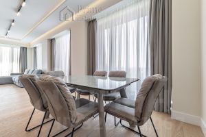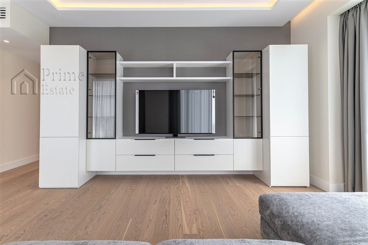Установлена итальянская кухня со встроенный бытовой техникой премиальной марки NEFF, канальная система центрального кондиционирования на базе чиллер-фанкойл с пультами управления в каждой комнате, в санузлах теплые полы, в постирочной стиральная и сушильная машины LG, бойлер.