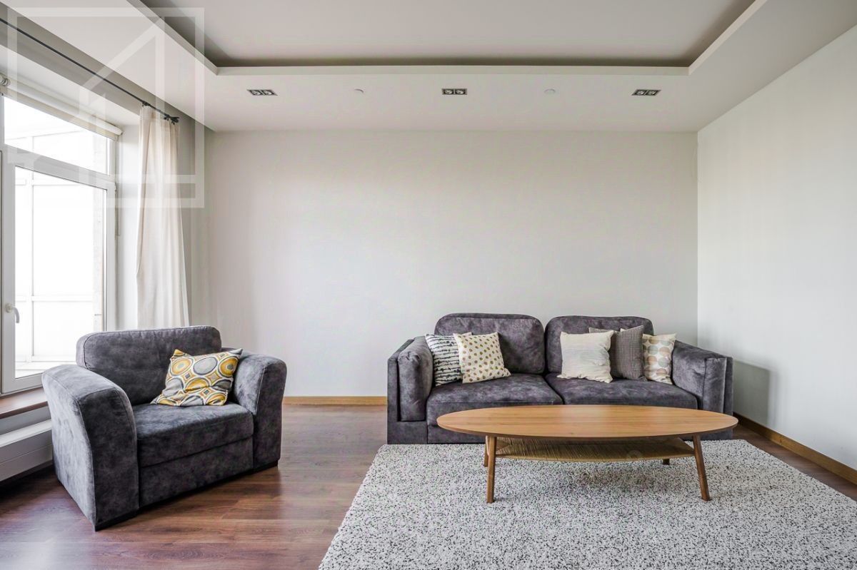 Планировка: кухня-гостиная с обеденной зоной, две спальни с гардеробной, жилая комната (можно использовать как вторую спальню или кабинет), два совмещенных с/у с ванной и душевой кабиной. Квартира меблирована, укомплектована всей необходимой для жизни бытовой техникой. Кондиционирование, подогрев полов, спутниковое ТВ, высокоскоростной интернет.