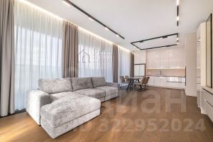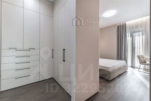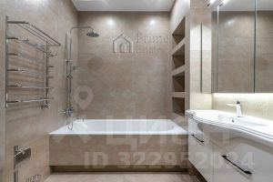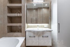 Мебель изготовлена на заказ. Большое количество встроенных шкафов для хранения. Бытовая техника и сантехника от ведущих производителей.