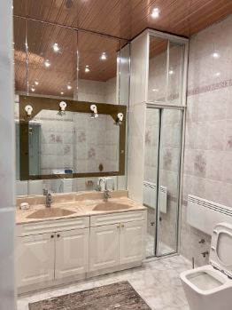 Кухонный гарнитур с встроенной бытовой техникой, холодильник, газ, два санузла, в большом санузле джакузи, душевая гидромассажная кабина, две раковины, встроенный шкаф, стиральная машина, пол с подогревом, бойлер для горячей воды на случай сезонных отключений. Квартира частично меблирована. Имеется потайная комната с сейфом. Можно с животными.