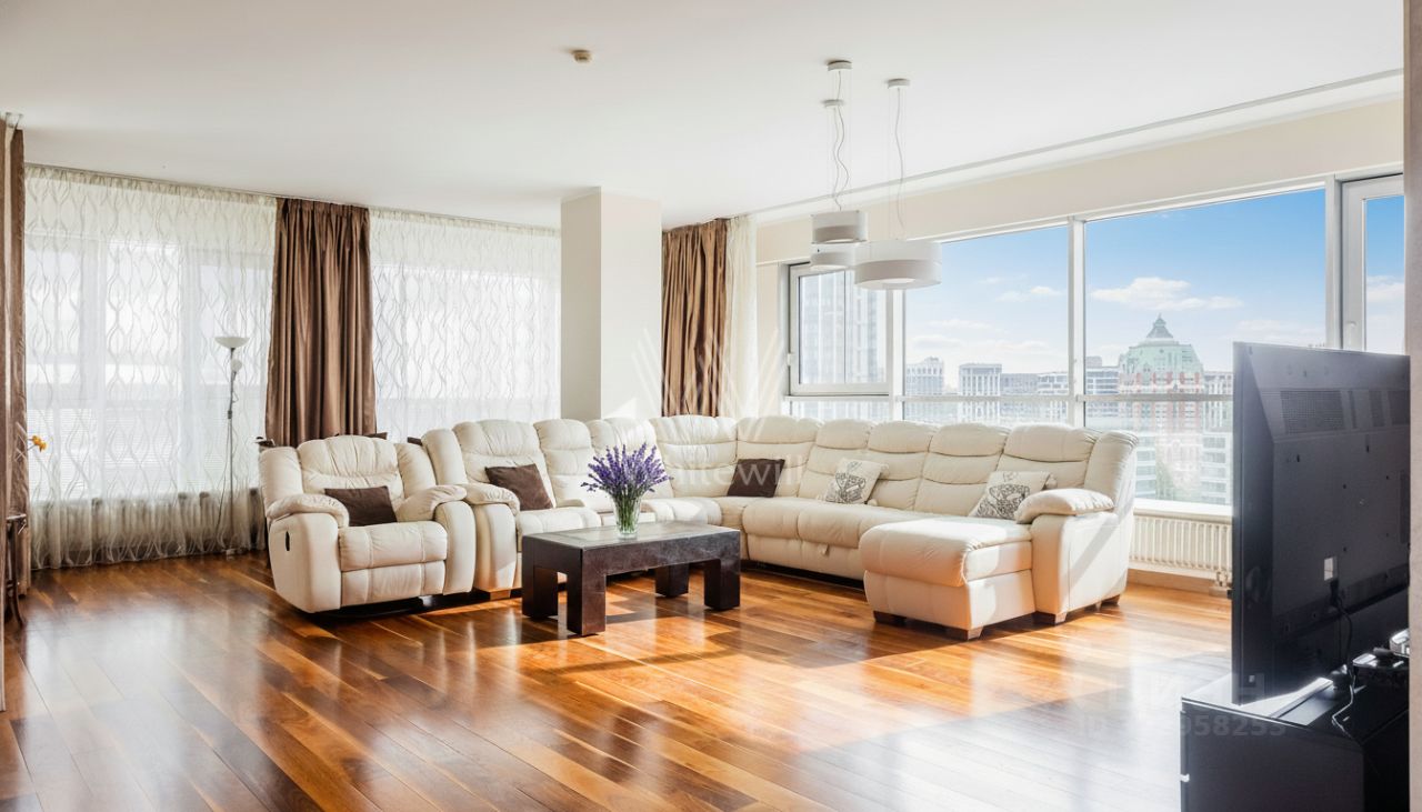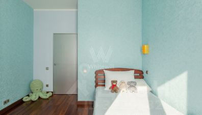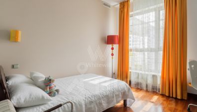 Квартира общей площадью 239 м² расположена на девятом этаже. Выполнен ремонт в современном стиле с использованием высококачественных материалов. Благодаря панорамным окнам и потолкам высотой 3 метра пространство наполнено естественным светом и воздухом.