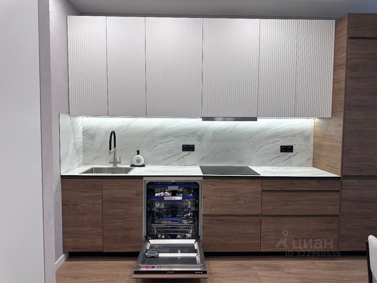 - встроенный холодильник, большая посудомойка (60 см), индукционная плита, СВЧ (микроволновка), духовой шкаф, варочная панель, вытяжка, кондиционер, смарт ТВ (55 дюймов)