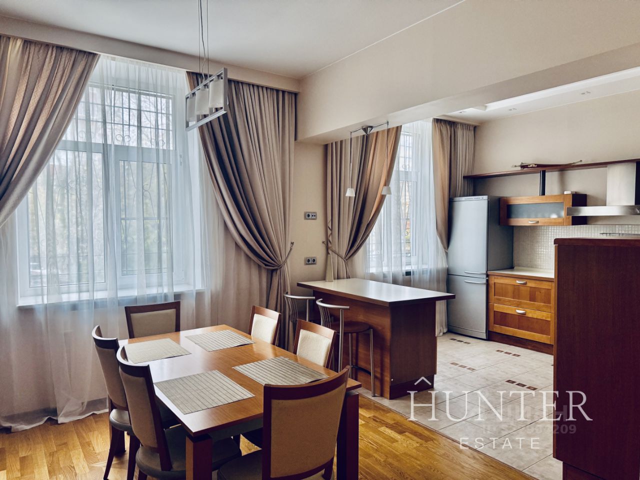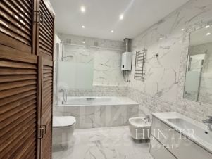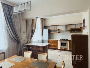 Продуманная планировка, высокие потолки (3 метра), в квартире: просторный холл, спальня с гардеробной, кабинет, гостиная, большая кухня-столовая, санузел.