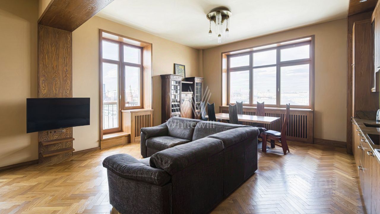 Бонус партнёрам 50%. Квартира с панорамным видом на Кремль в комплексе "Дом на набережной" на острове Балчуг в самом центре Москвы. Выполнен дизайнерский ремонт с использованием ценных пород дерева, большое количество окон с видами на три стороны. Из окон открываются живописные виды на центр города, Москву-реку, башни Кремля, Репинский сквер.