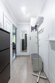 Для хранения вещей - 3 шкафа (два в комнате и один в прихожей), комод.