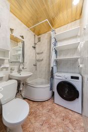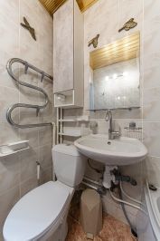 Также есть полки и шкафчик в ванной комнате.