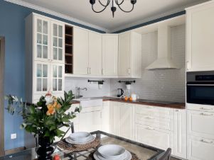 Бытовaя теxникa: кондиционер, холодильник, варочная панель, духовой шкаф, микроволновая печь, стиральная машина, посудомоечная машина, вытяжка, телевизор, электрический чайник.
