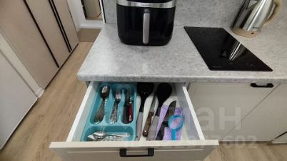 Квартира полностью оборудована для комфортного проживания. В комнате и на кухне есть вся необходимая мебель. Из техники: кондиционер, посудомоечная машина, холодильник, стиральная машина и телевизор. В ванной комнате установлена душевая кабина, что позволяет экономить время по утрам.