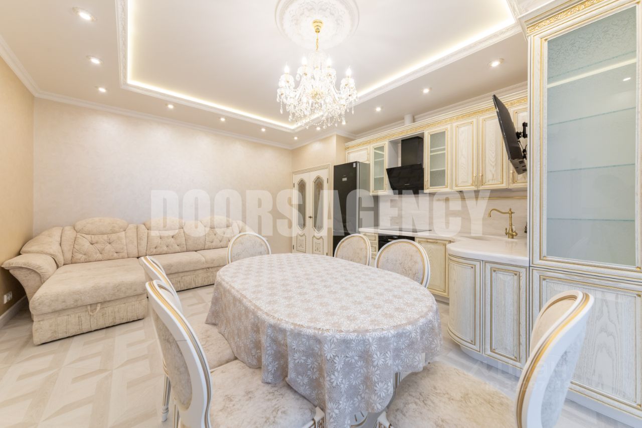 В квартире выполнен качественный ремонт в светлых тонах. Есть вся необходимая техника: стиральная машина, кондиционер, два телевизора (в спальне и гостиной), посудомоечная машина. Совмещенный с/у с душевой. Много мест для хранения (3 встроенных шкафа и гардеробная). Диван в гостиной раскладывается.