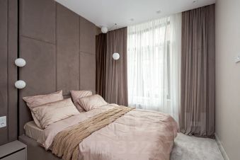 В спальне 2-х спальная кровать с ортопедическим матрасом, вместительная гардеробная комната.