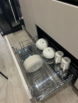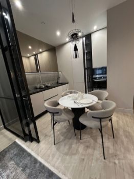 Кухня-гостинная представлена рабочей зоной (холодильник, варочная панель, духовой шкаф, вытяжка, посудомоечная машина) , обеденной зоной , гостиной зоной с большим раскладывающимся диваном