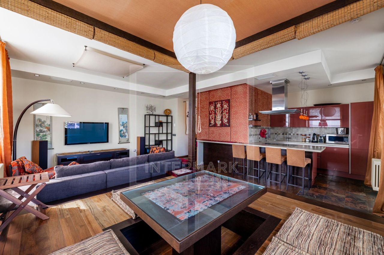 ID 31270. Предлагается в аренду на длительный срок эксклюзивная 3- х комнатная квартира с окнами на восток и юг и с панорамными видами на город. Ручная работа по индивидуальным эскизам на заказ из Китая и Сингапура. Кухня Siematic оборудована техникой Gaggenau. Домашний кинотеатр: Pioneer, Sonus Faber, Denon, NAD. В отделке и дизайне предпочтение отдано использованию традиционных для Востока натуральных материалов и тканей: дерево, сизаль, шелк. Мебель: Le Fablier, La Falegnami, CTS Salotti, MIMO, Cattelan (Италия). Квартира оборудована приточно-вытяжной вентиляция с системой кондиционирования. Есть 1 м/м в подземном паркинге.
