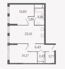 * изолированная комната — 15,83 м²